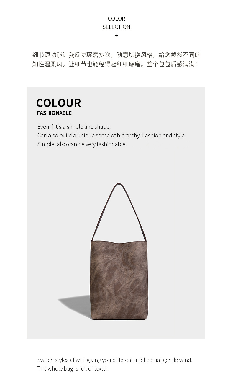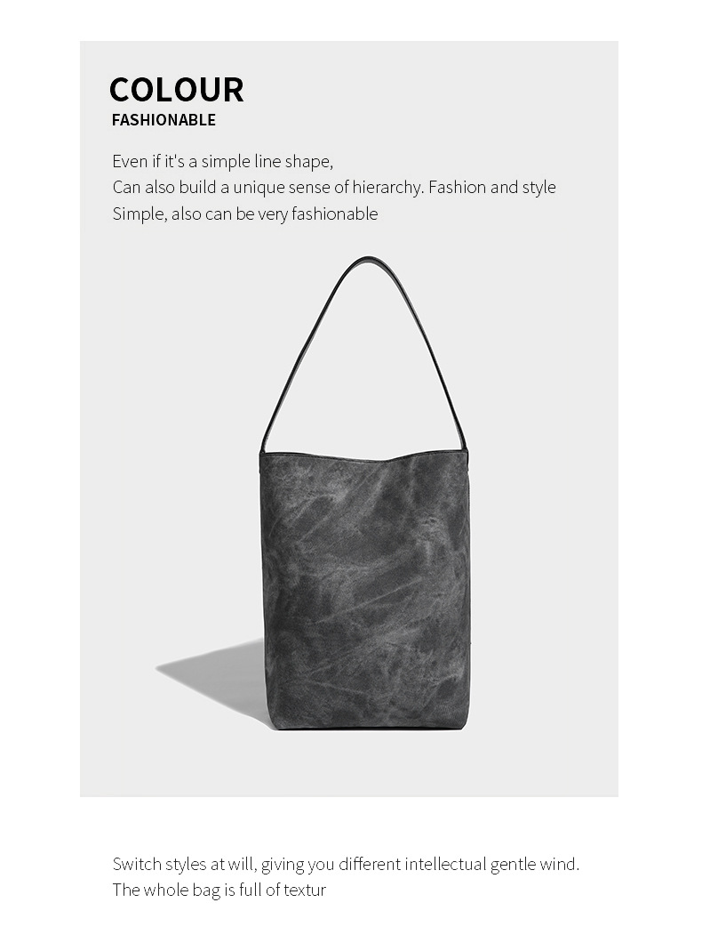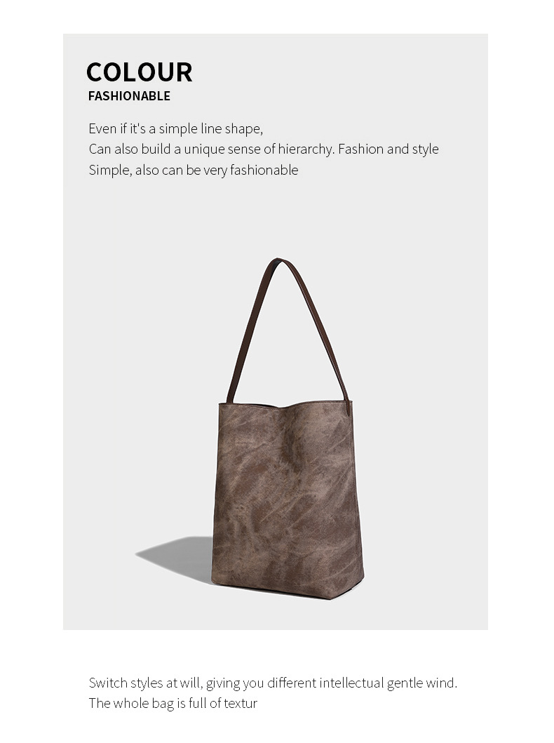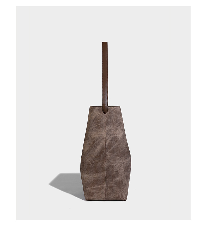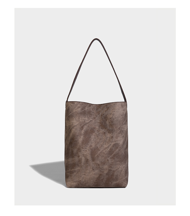 High-end canvas tote bag, large-capacity fashionable shoulder bag, contrasting color commuter bag, lazy style bucket bag, armpit bag