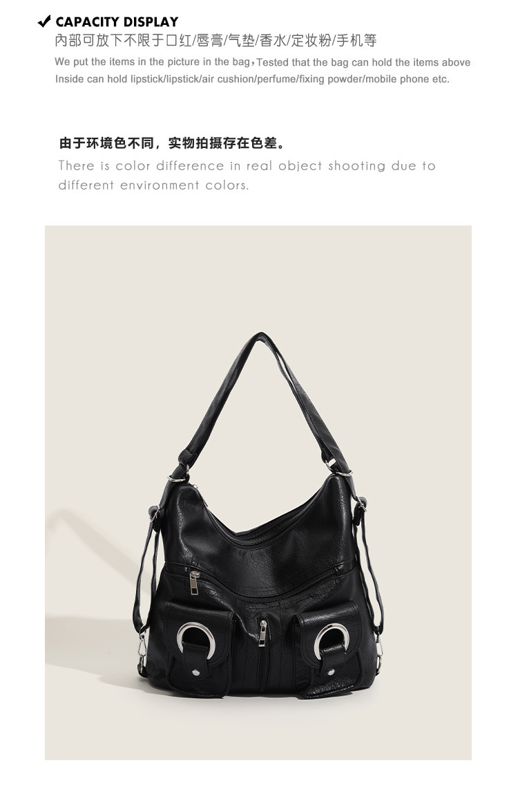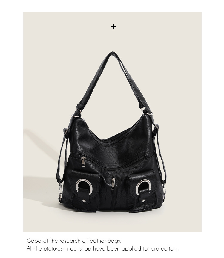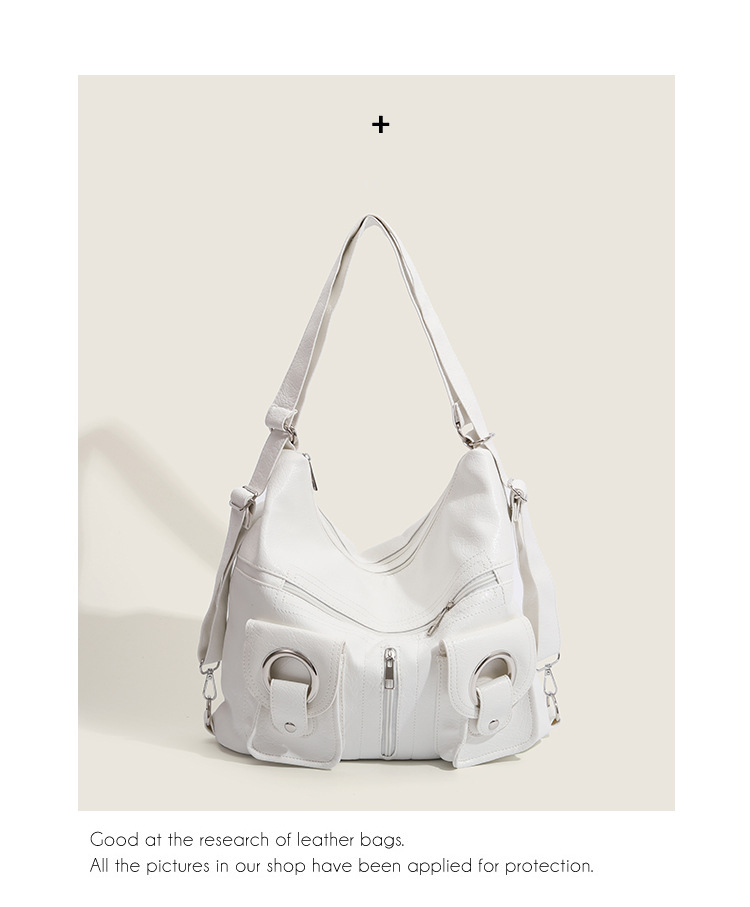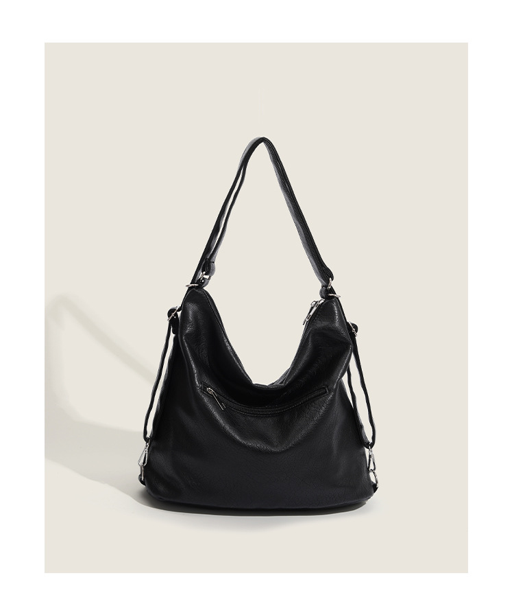 Simple and versatile fashionable zipper pocket 2023 summer soft leather tote bag shoulder bag commuting large capacity backpack