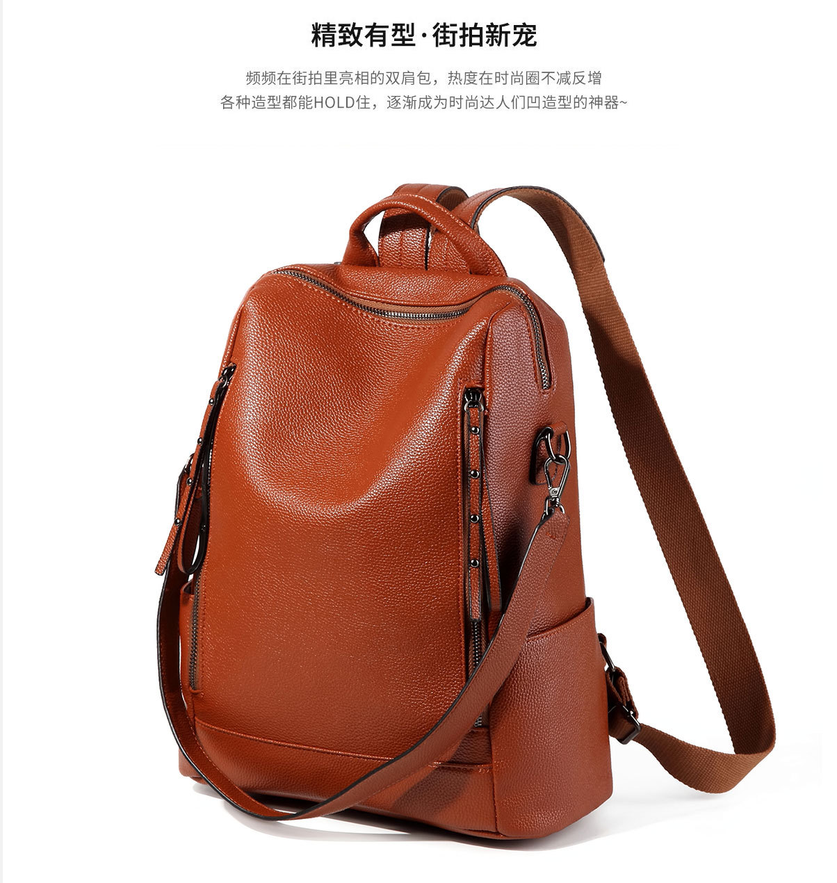 Soft leather large-capacity waterproof backpack for women 2023 new fashion casual travel office worker high-end sense
