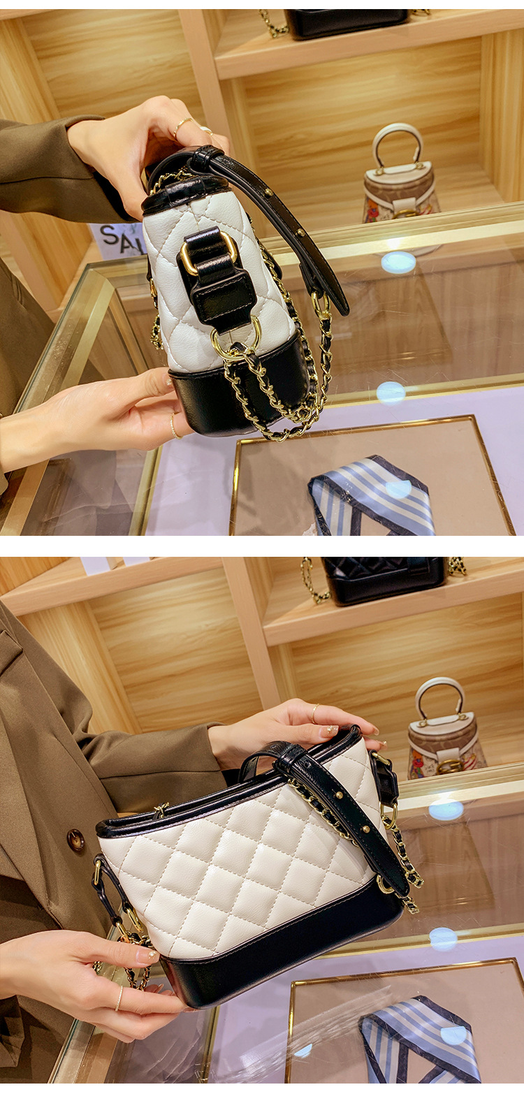Hong Kong genuine leather small fragrant style rhombus chain bag for women, high-end shoulder hobo bag, crossbody bucket bag 2023 new style