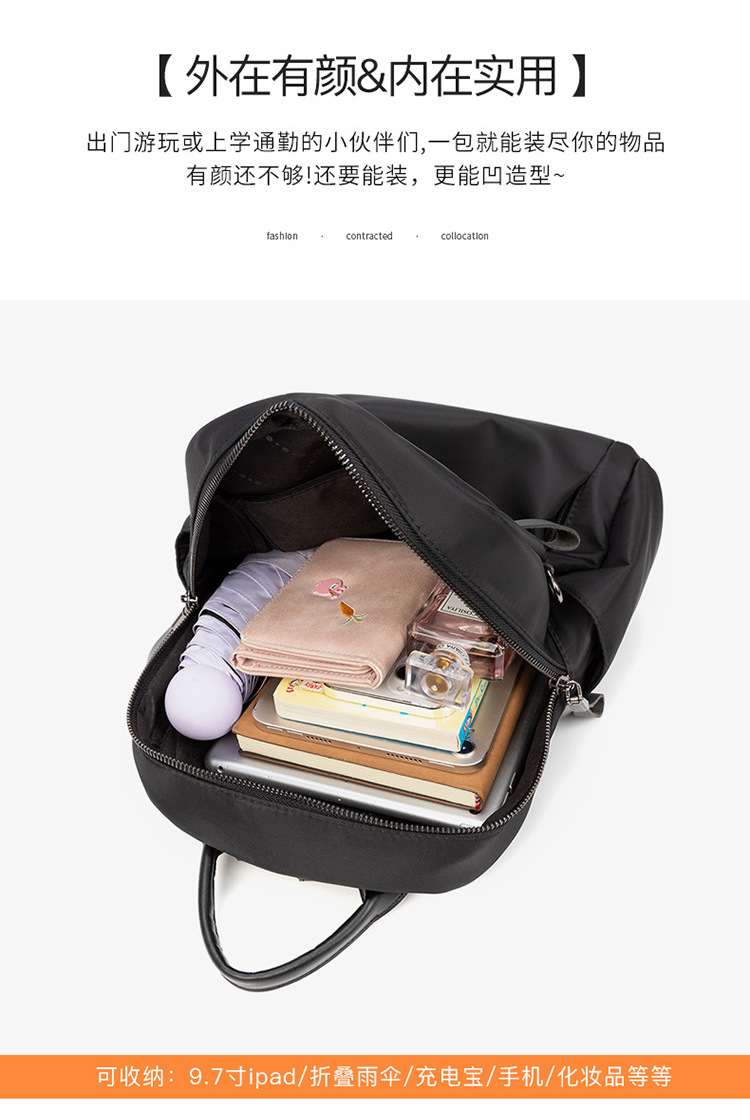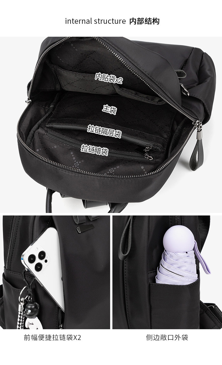 Internal structure of bag: zipper hidden pocket, mobile phone bag, ID bag, sandwich zipper bag