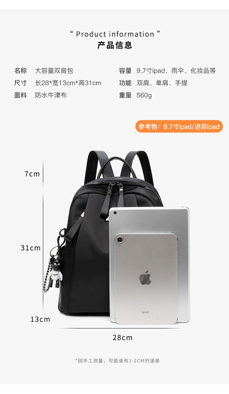 Waterproof Oxford cloth backpack for women 2023 new Korean style trendy and versatile fashionable large-capacity women's backpack travel bag