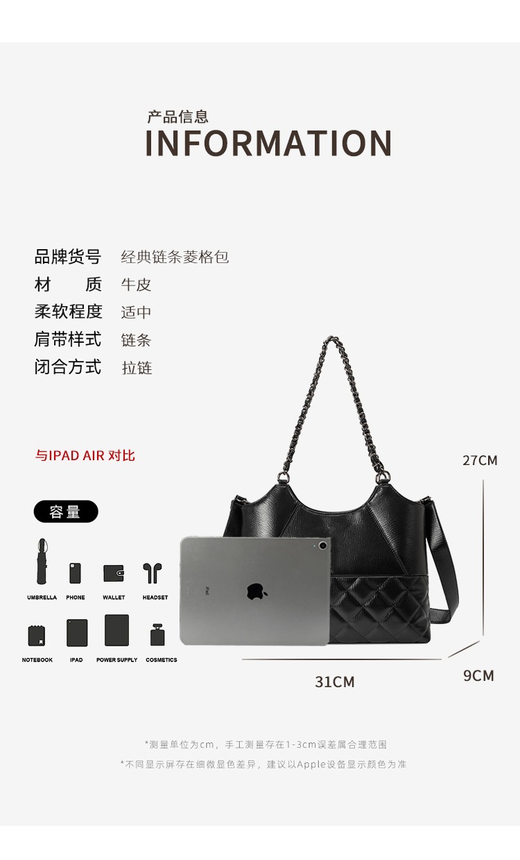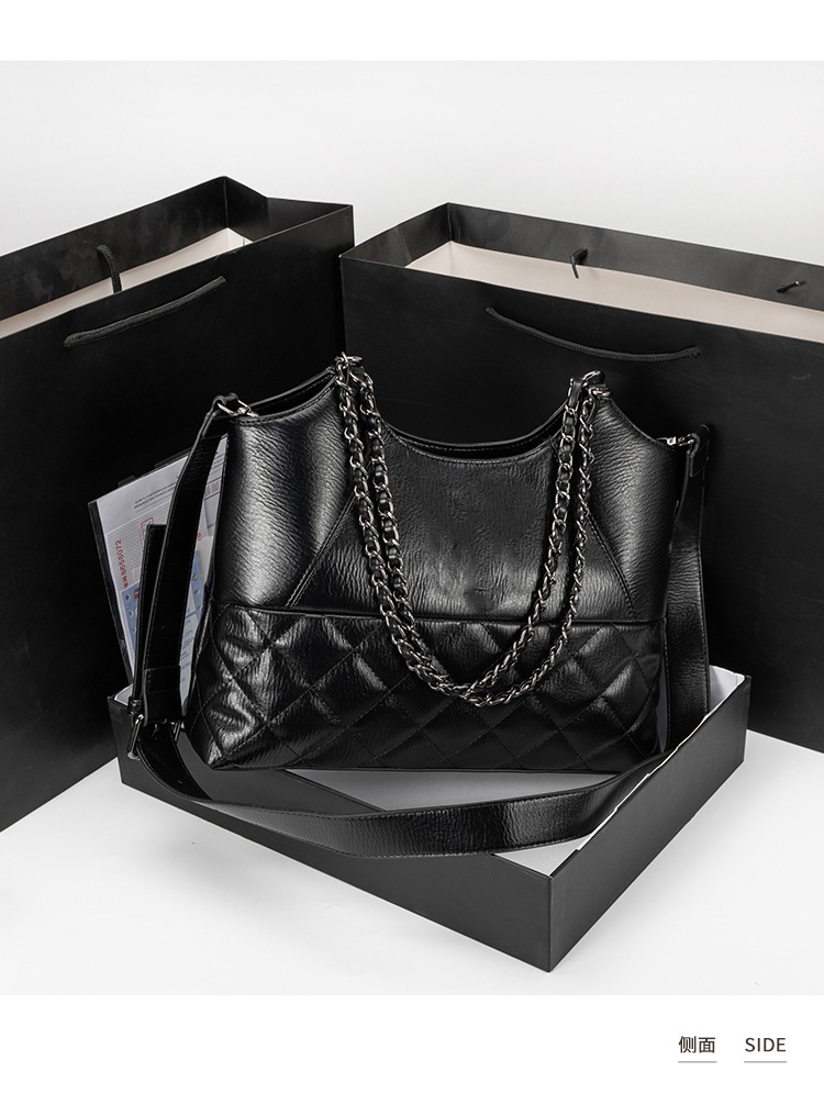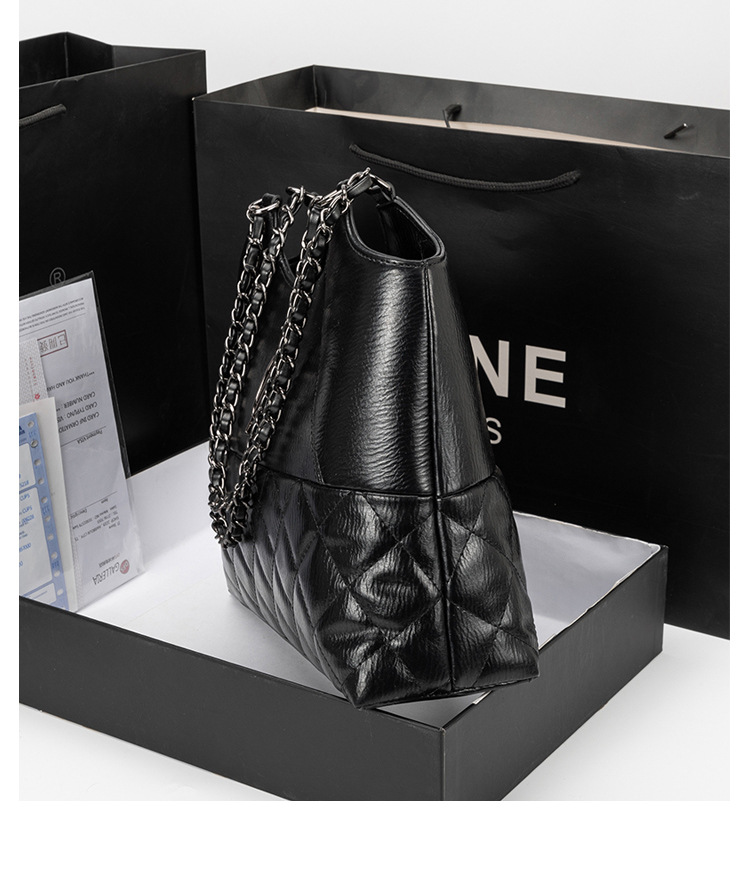 Autumn and winter new fashion large-capacity shopping tote bag European and American light luxury simple diamond chain shoulder tote bag trendy