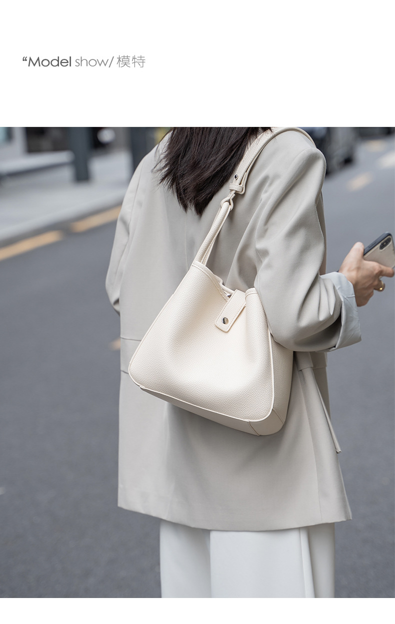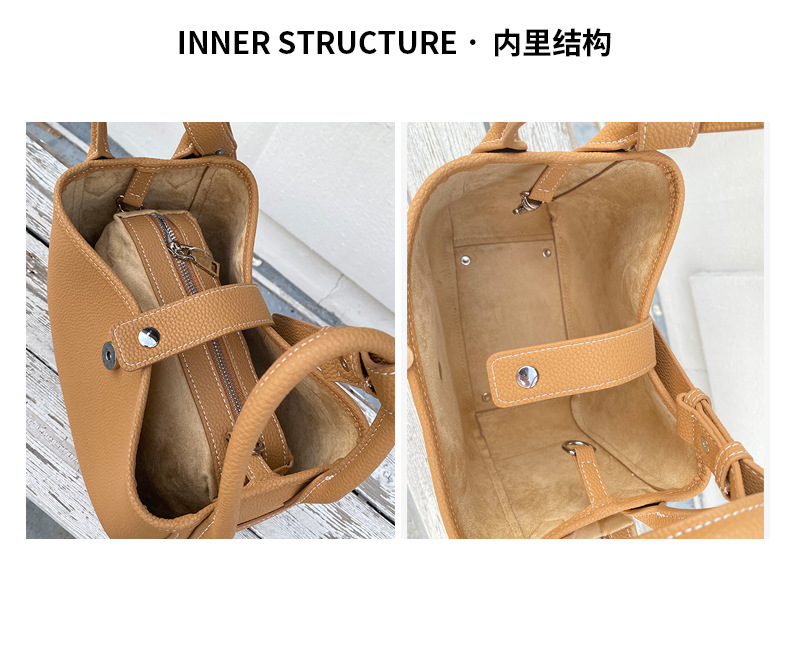 First-layer cowhide vegetable basket handbag 2023 new autumn and winter shoulder crossbody bag niche genuine leather women's bag bucket bag