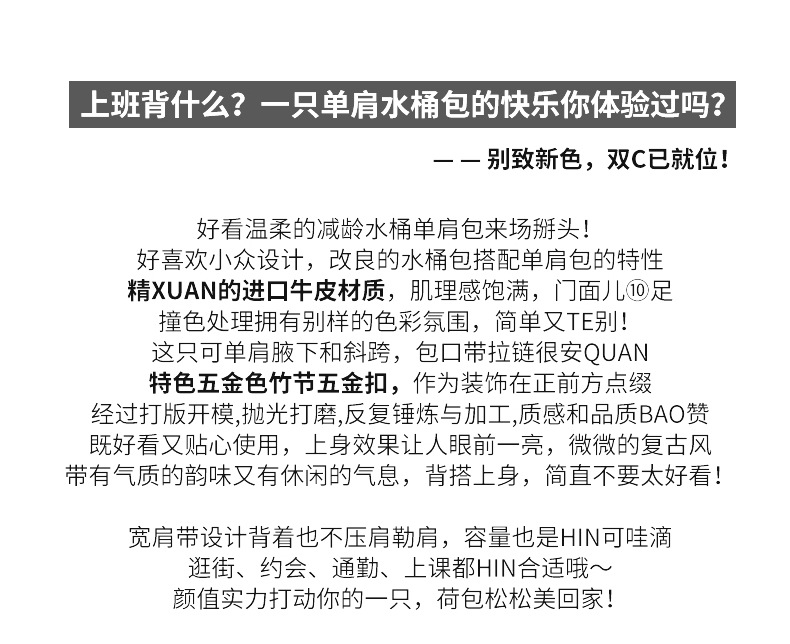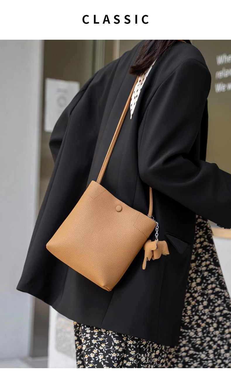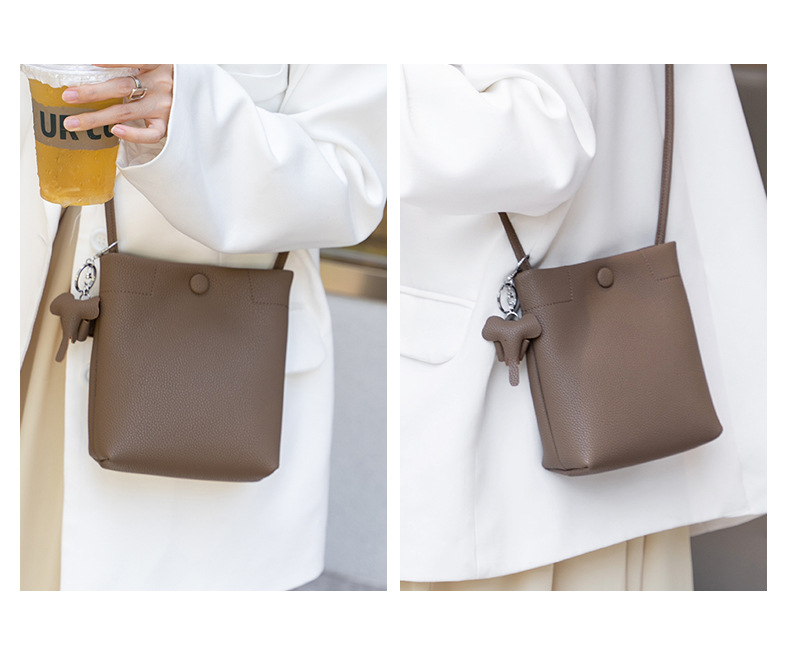 First-layer cowhide mini tote bucket bag for women 2023 new casual versatile genuine leather women's bag single shoulder crossbody bag