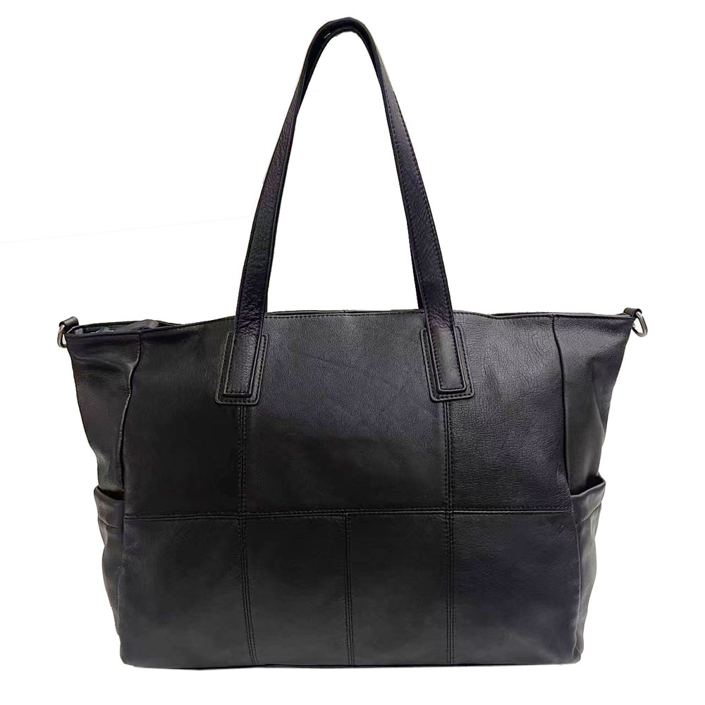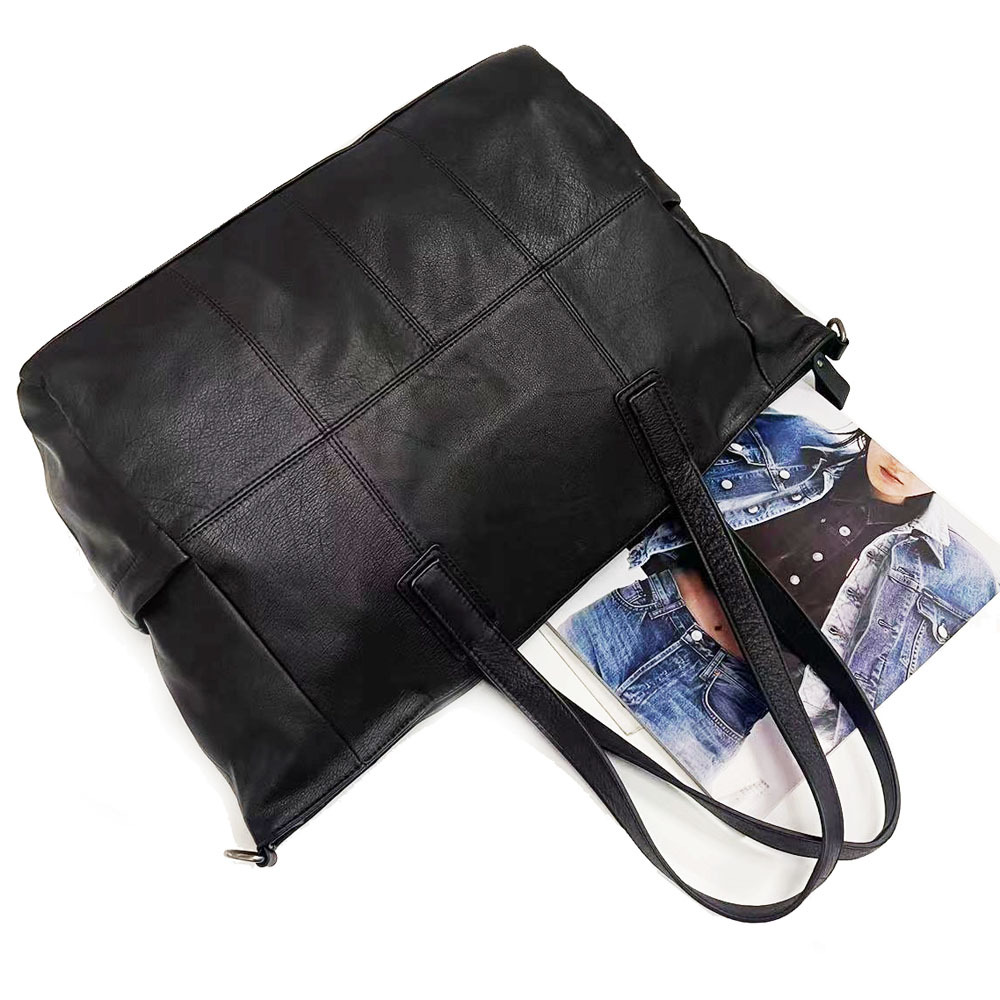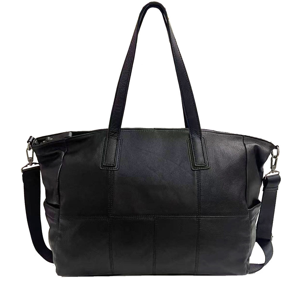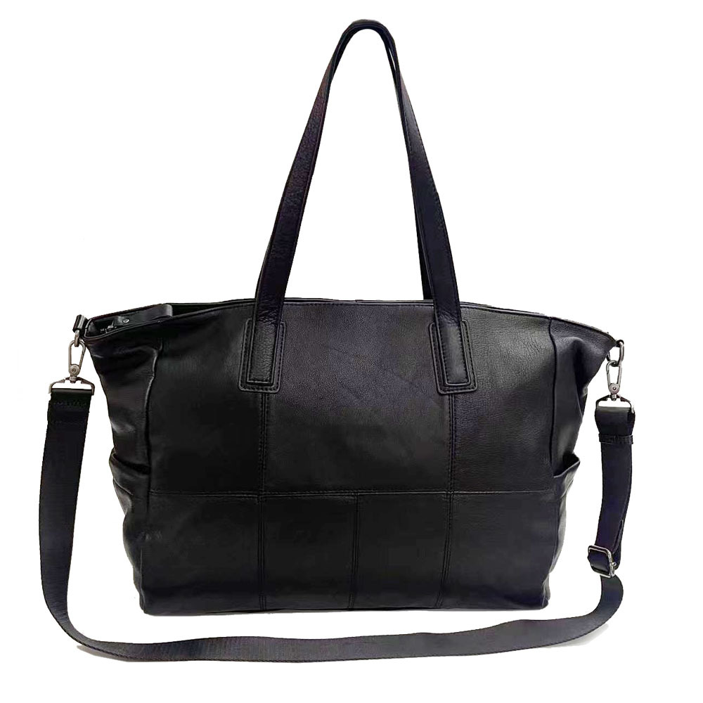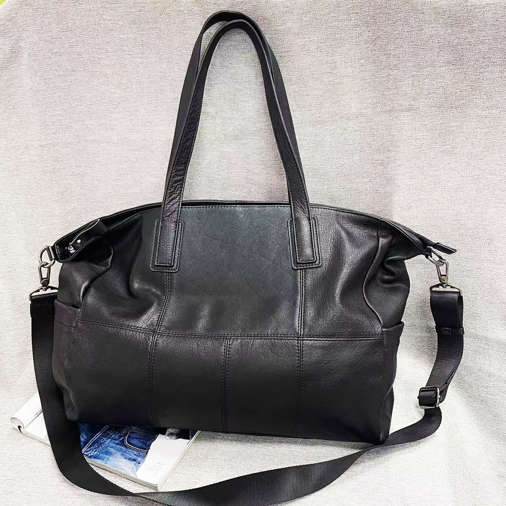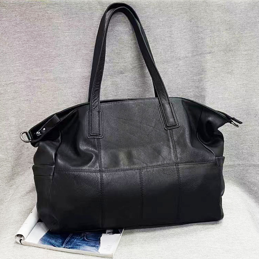 Cross-border genuine leather bag, black cowhide shoulder tote bag, crossbody bag, large-capacity travel bag, bag purchase ready stock