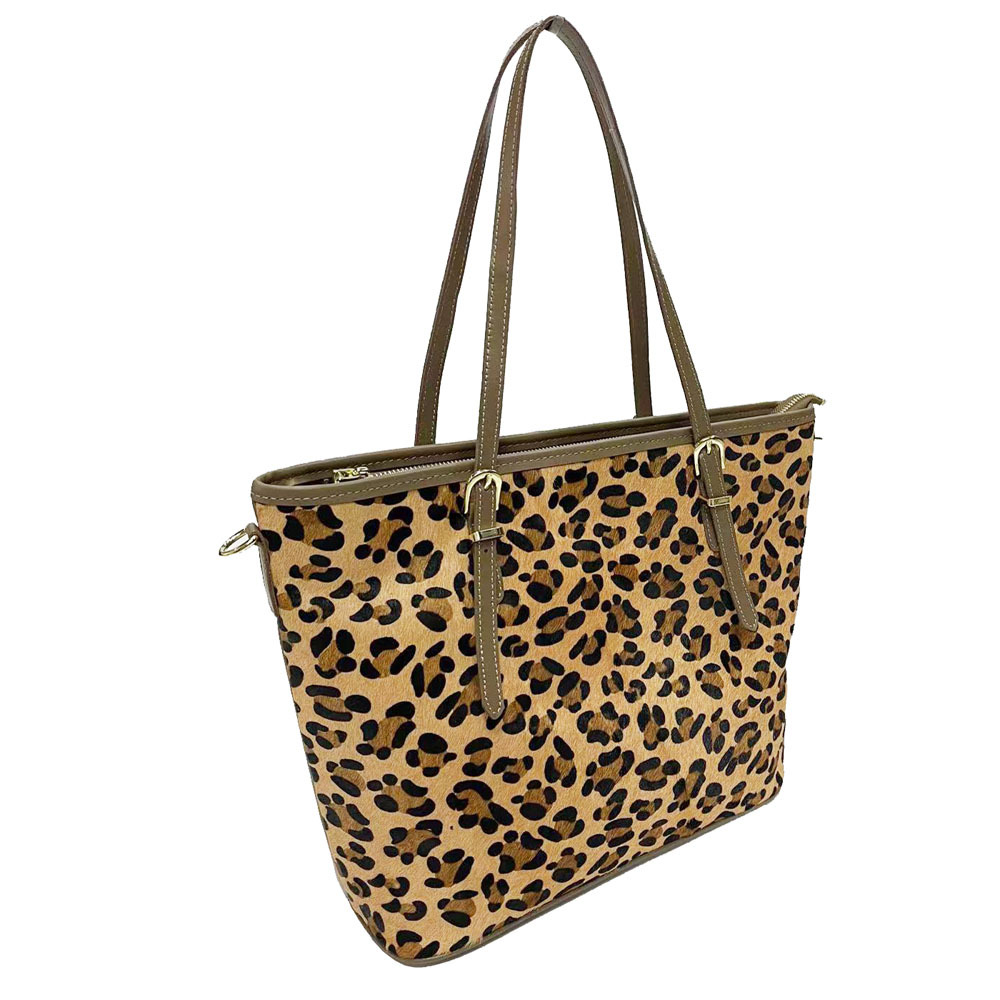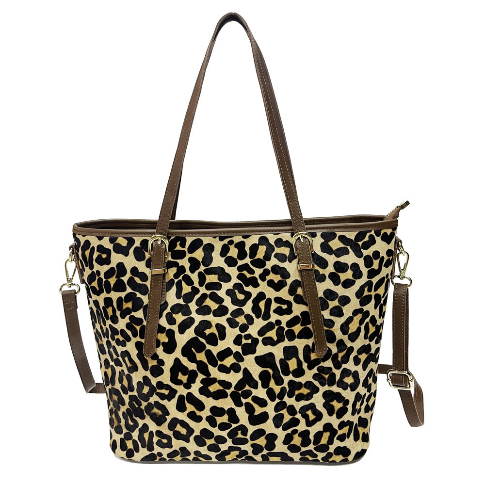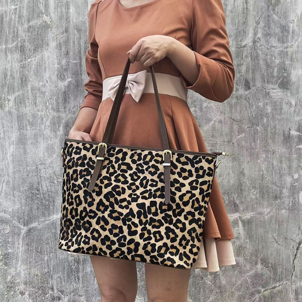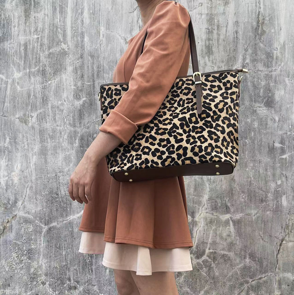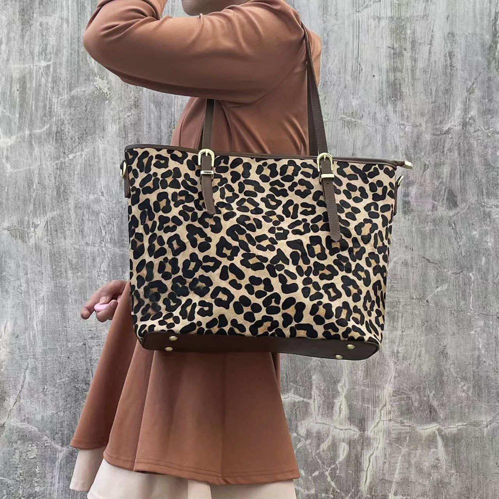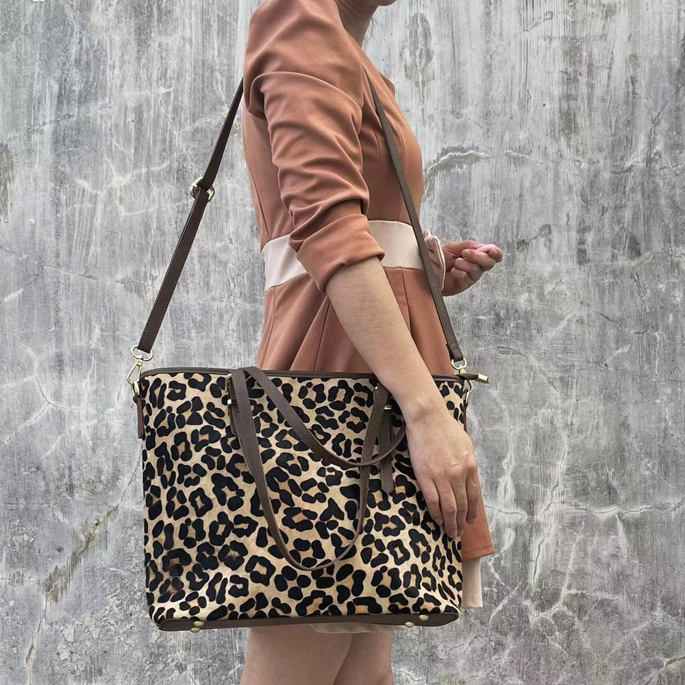 Full genuine leather cross-border women's handbag hand-held shoulder bag leopard print horse hair genuine leather all-in-one fashionable shoulder crossbody bag tote bag