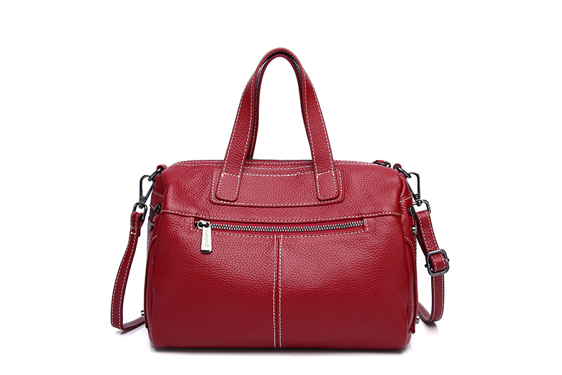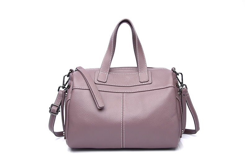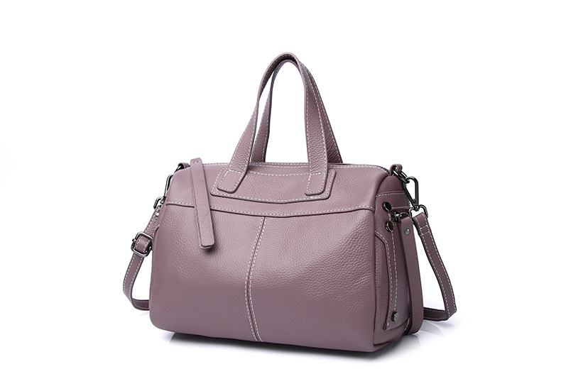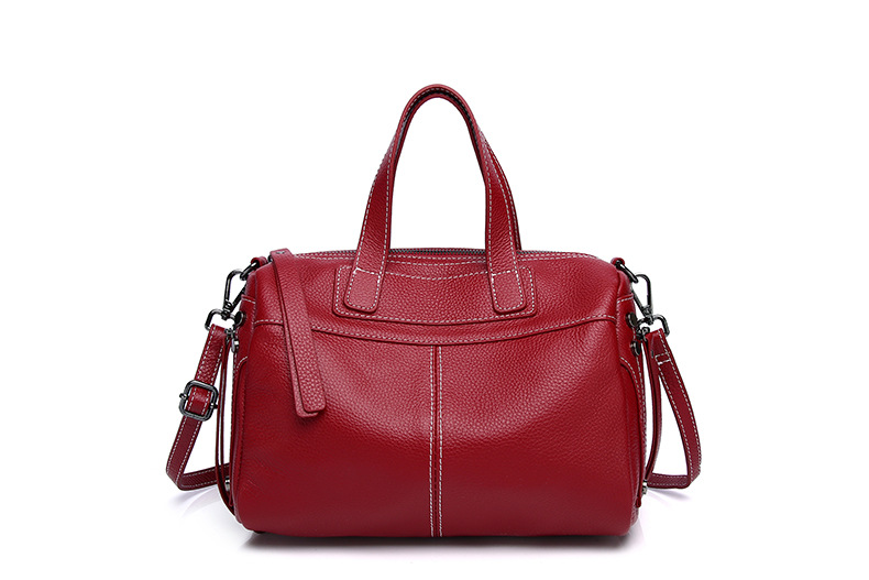 2023 new Korean version of large-capacity first-layer cowhide stitched soft leather casual Boston bag shoulder crossbody handbag